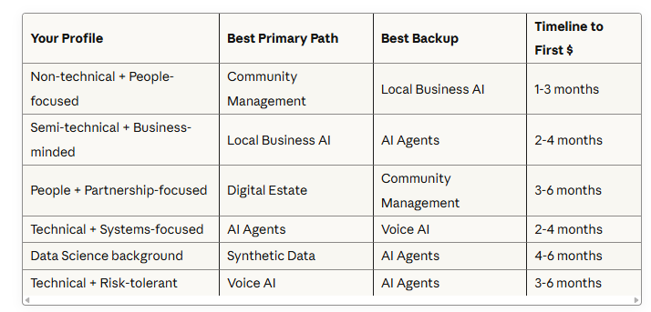 ✅ Where genuine market demand exists right now ✅ Relative growth rates and trajectories ✅ Skill requirements and realistic entry barriers ✅ Approximate timelines for competent people who execute well